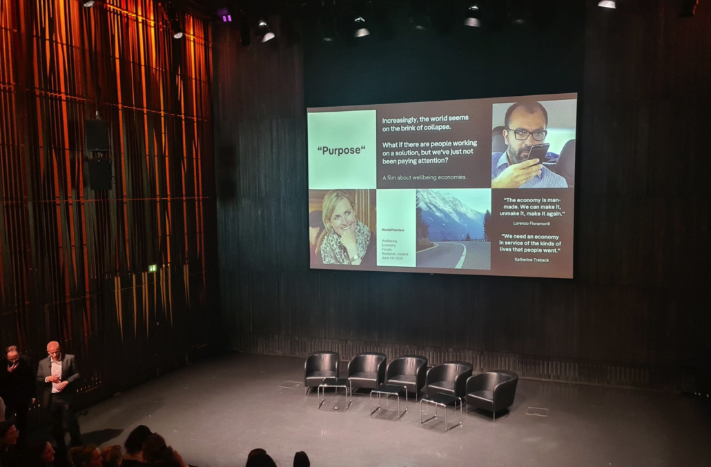 This year’s event showcased the world premiere of the film ‘Purpose’. Purpose follows the fortunes of Katerine Trebeck (co-founder of WEAll) and Lorenzo Fioramonti (former Italian education minister) as they navigate, from the outside and inside of politics, the creation of a new government alliance, committed to exploring economic policy making with the purpose of serving people and the planet first.